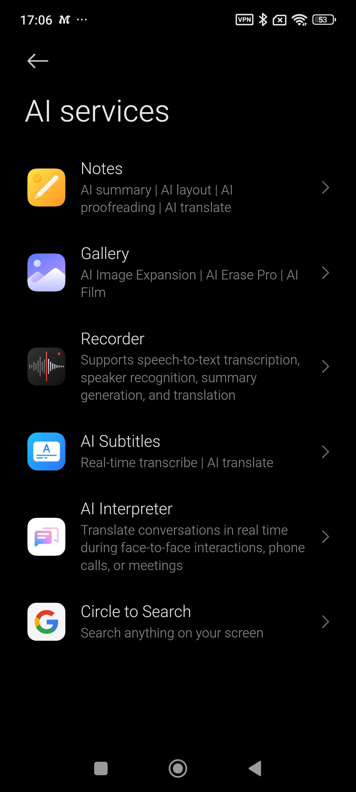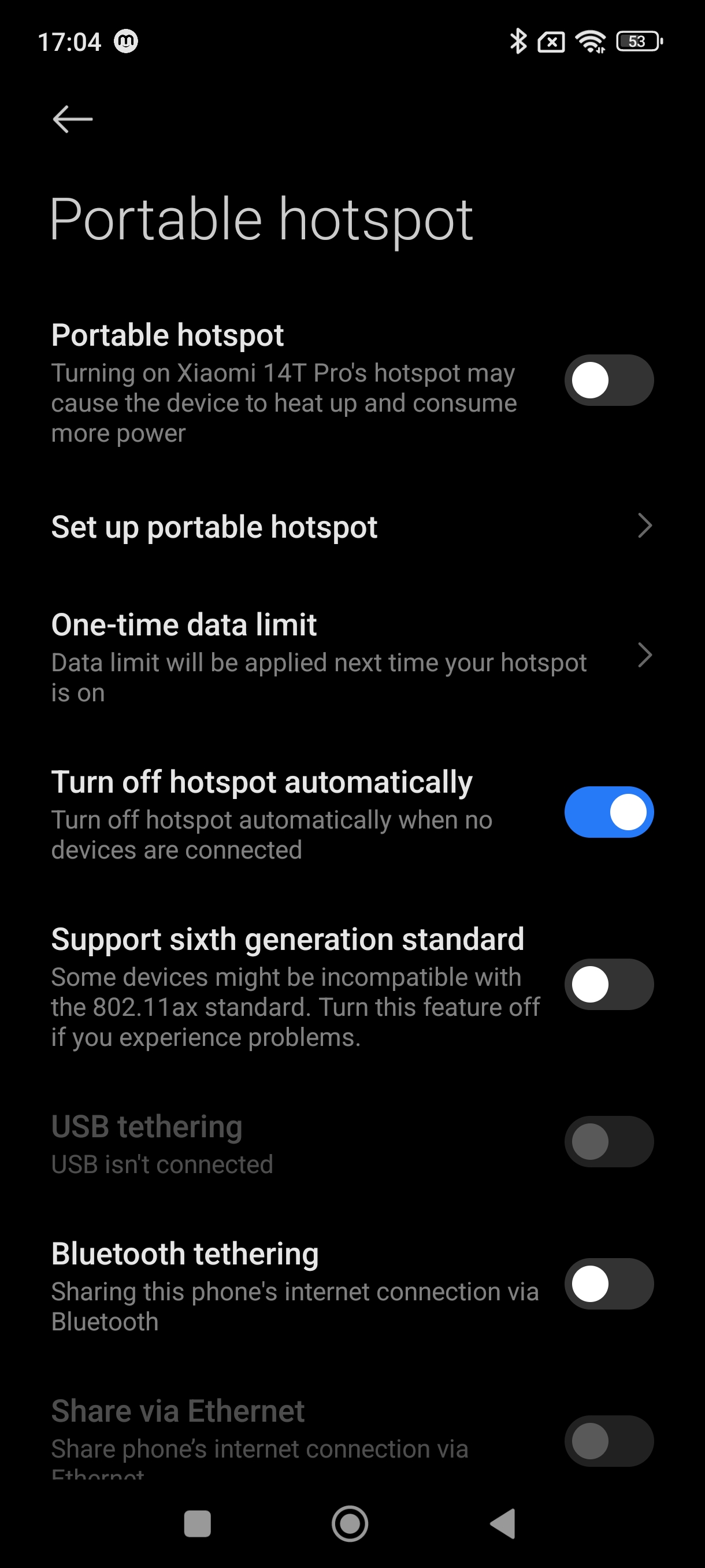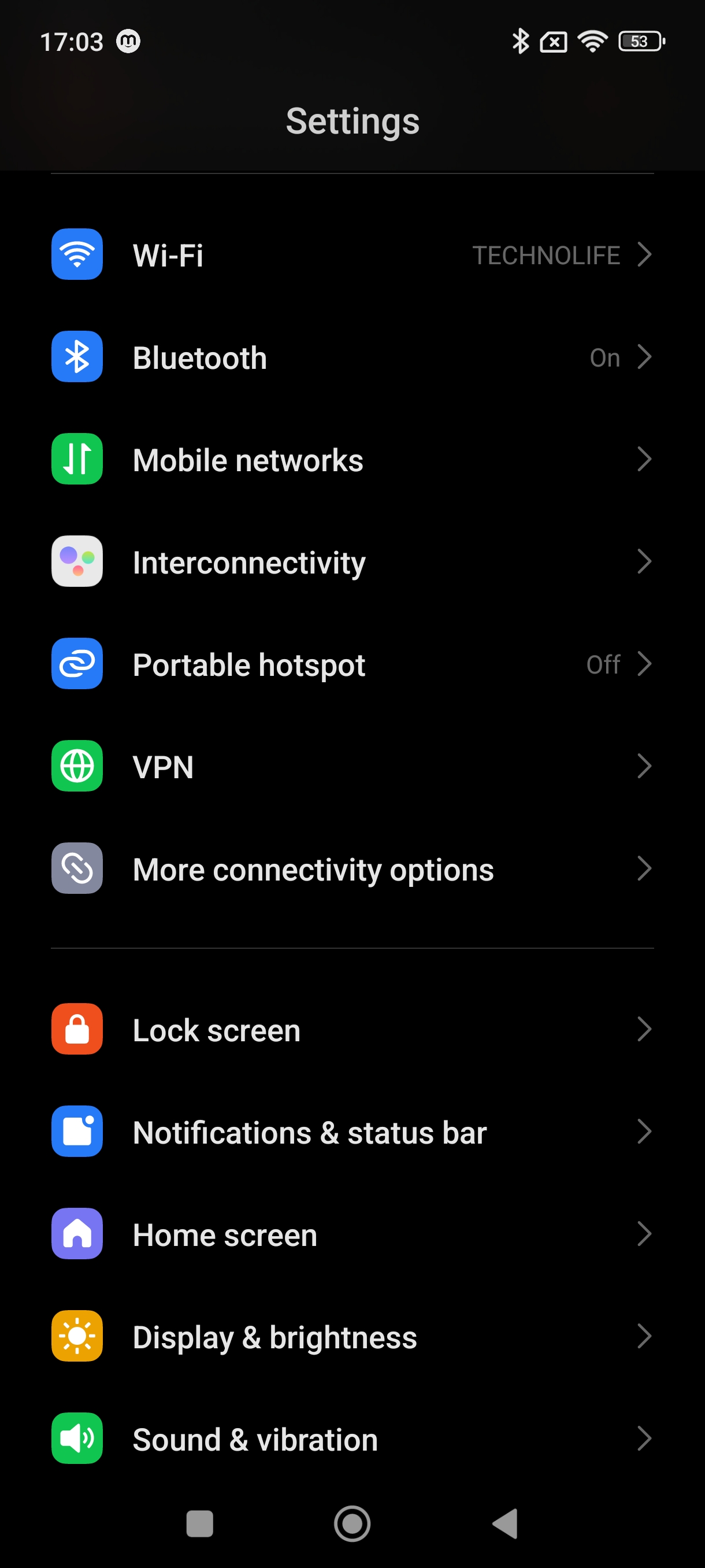 زمانی که وارد تنظیمات میشوید، میتوانید به صورت جداگانه وارد بلوتوث، موبایل نتورک و تنظیمات هات اسپات شوید.