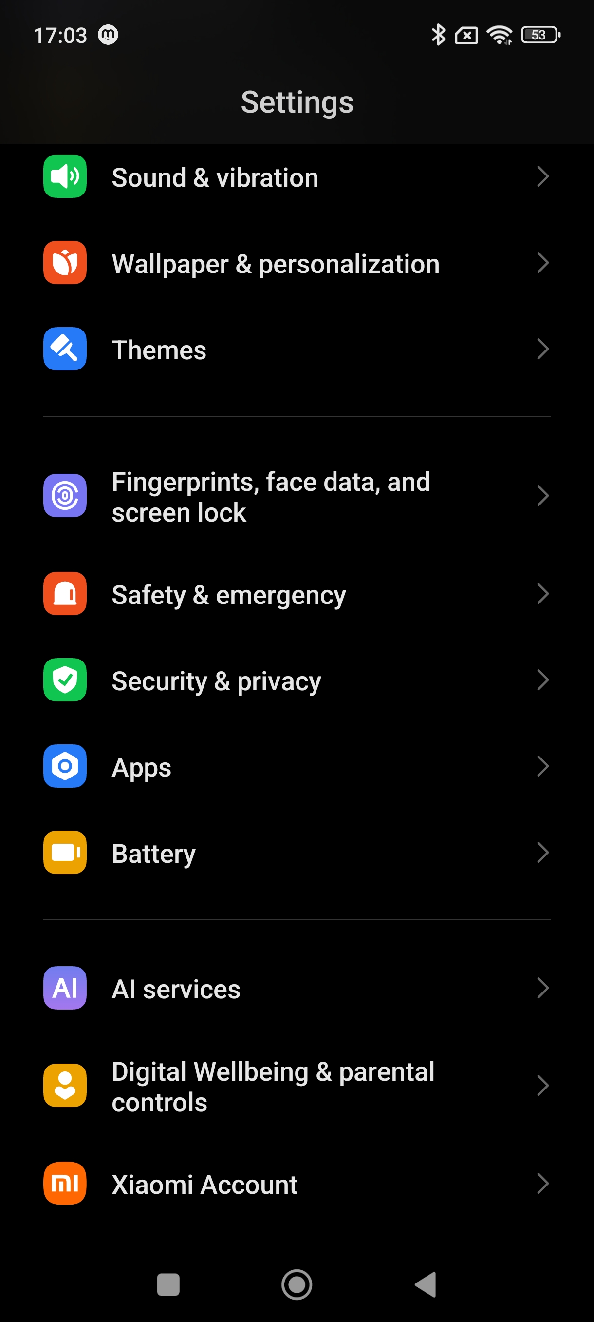 وارد برنامه Settings شوید. در این بخش رابط کاربری بسیار مشابهی با iOS را مشاهده میکنید. شکل و شمایل آیکونها و المانها نشان دهنده شباهت رابط کاربری هایپر او اس با آی او اس است.