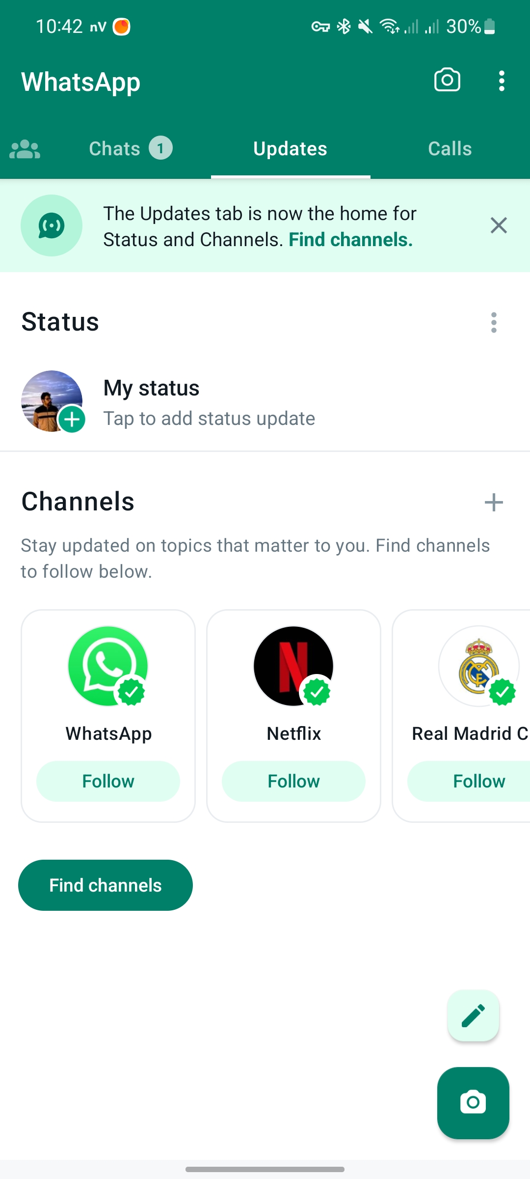 اگر آخرین نسخه از برنامه محبوب واتساپ را به روی گوشی خود نصب داشته باشید، حتما میدانید که قابلیت کانال به این پیام رسان اضافه شده و حالا شما دقیقا مانند تلگرام میتوانید به کانالهای مختلف اضافه شوید و اخبار یا پستهای سرگرم کننده را دنبال کنید. برای دسترسی به این بخش باید وارد واتساپ شوید و از بخش Updates کانالها را مشاهده کنید.