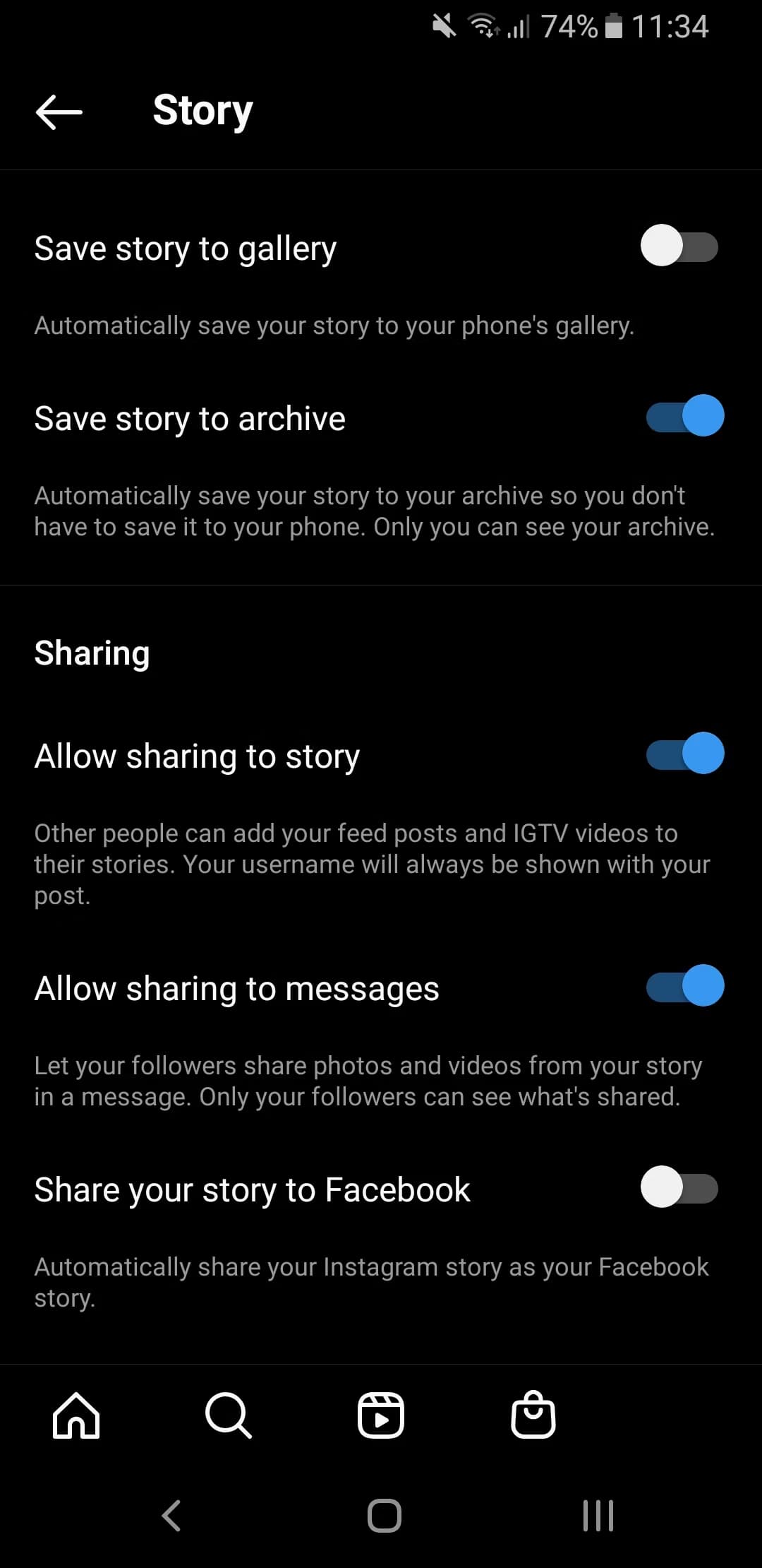 در این قسمت به سمت پایین اسکرول کنید تا بتوانید گزینه Save Story to Archive را فعال کنید.