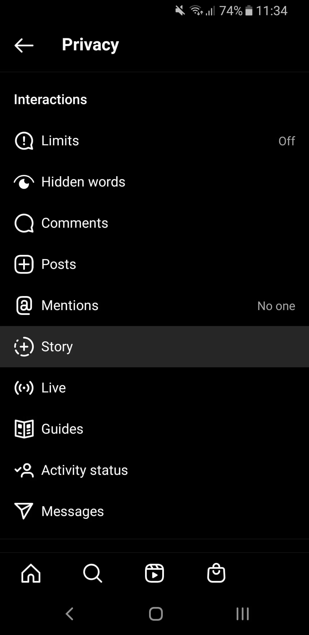 سپس وارد Settings شوید. در ادامه وارد Privacy شوید و حالا Sotry را انتخاب کنید.