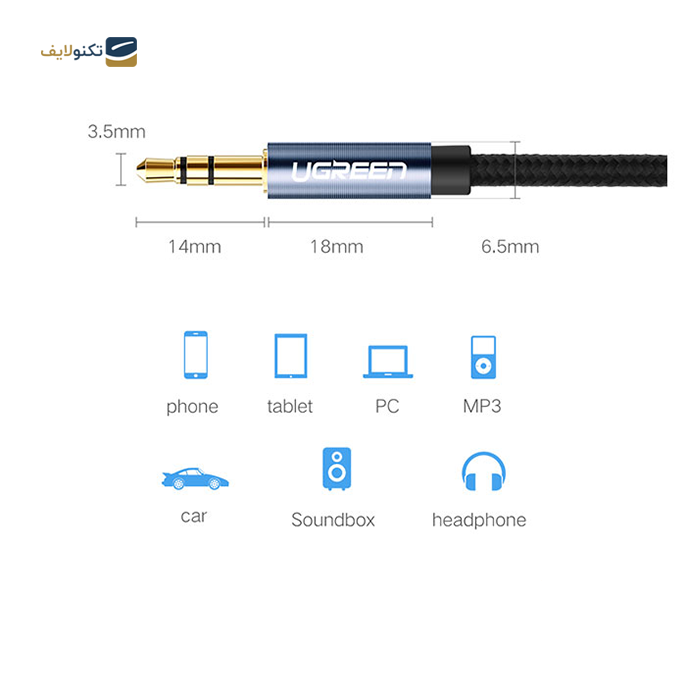کابل AUX یوگرین AV112 مدل 10684 طول 0.5 متر