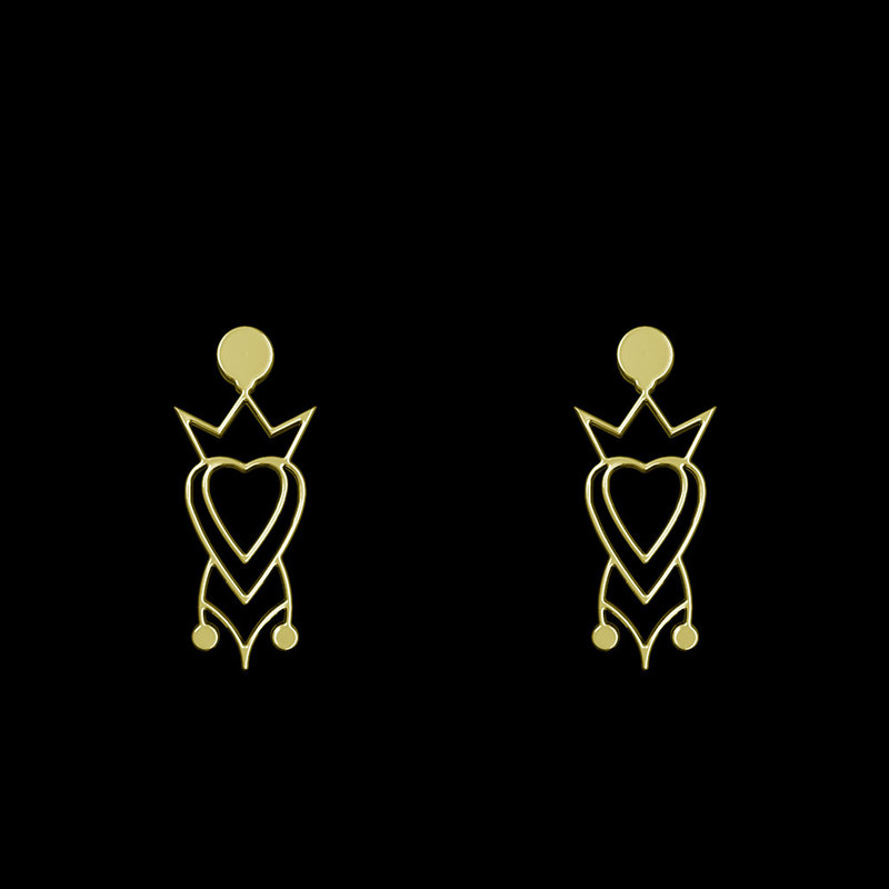 گوشواره طلای 18 عیار بان گالری مدل قلب ونکلیف آلبالویی