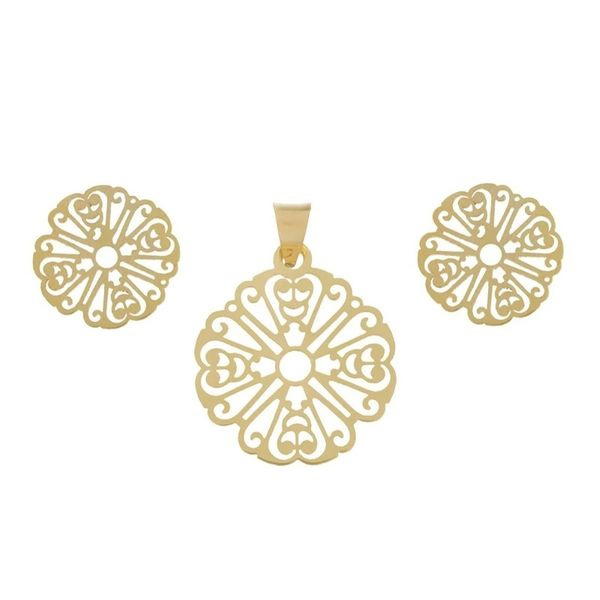 نیم ست طلا 18 عیار دخترانه شمیم گلد گالری مدل گل زیبا 635
