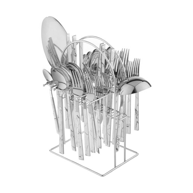 سرویس قاشق و چنگال 30 پارچه ناب استیل مدل پالرمو براق
