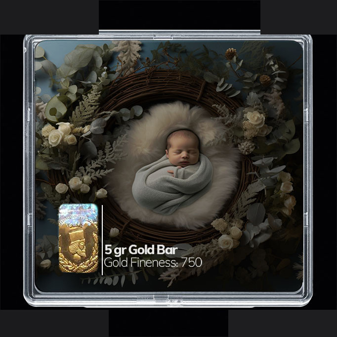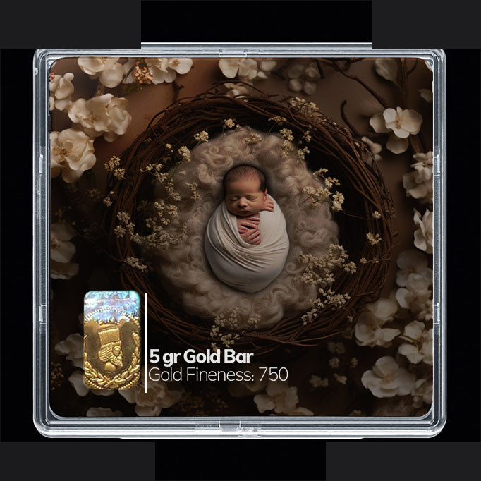 شمش طلا 18 عیار مدوپد مدل نوزاد و صدف کد SG10214