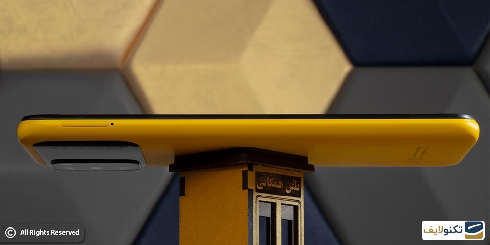 روی لبه سمت راست گوشی poco m3 دکمههای تنظیم صدا و دکمه پاور قرار گرفته که البته با حسگر تشخیص اثرانگشت ترکیب شده است. روی لبه سمت چپ هم محل قرار گرفتن سیمکارت و کارت حافظه را مشاهده میکنید. روی لبه بالای گوشی هم میکروفن را مشاهده میکنید و روی لبه پایینی گوشی هم بلندگوی اصلی، جک ۳٫۵ میلیمتری خروجی صدا و میکروفن را مشاهده میکنید.