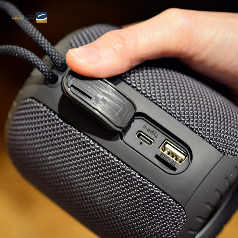 باتری داخلی این مدل ظرفیتی حدود ۱۲۰۰ میلی‌آمپر ساعت دارد. این ظرفیت برای حدود ۴ تا ۵ ساعت پخش مداوم موسیقی در ولوم متوسط کافی است. لازم به ذکر است که اگر قصد استفاده در طول روز را دارید، قابلیت شارژ سریع از طریق درگاه Type-C نیز در دسترس است. یکی از جذاب‌ترین ویژگی‌های این اسپیکر که حتی در اسپیکرهای رده بالایی مثل اسپیکر سونی وجود ندارد، امکان استفاده از آن به‌عنوان پاوربانک است؛ قابلیتی که به‌ویژه در سفر یا زمان قطعی برق بسیار کاربردی خواهد بود.