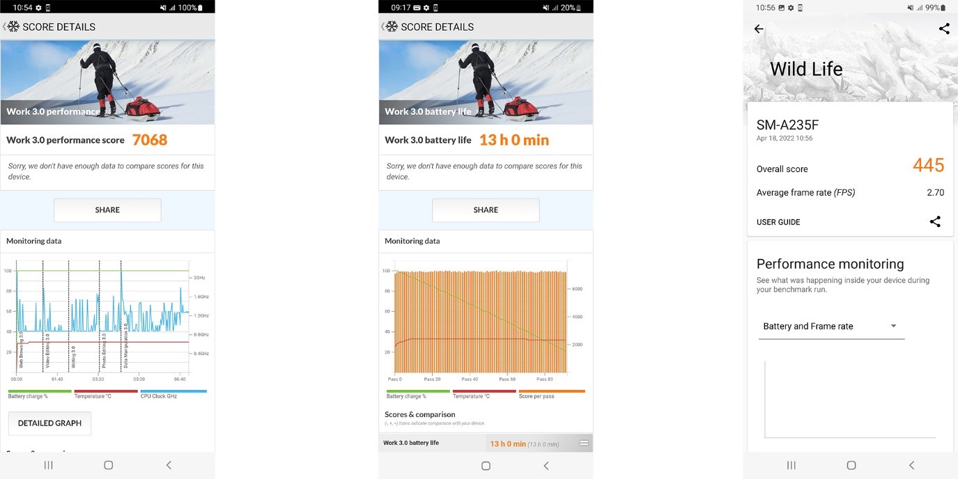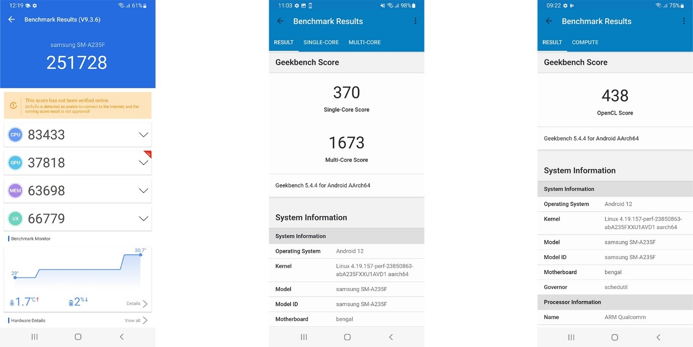 اسکرینشاتهای مختلفی از امتیاز گلکسی A23 در تست بنچمارکهای مختلف تهیه کردیم که در ادامه میتوانید آنها را مشاهده کنید.