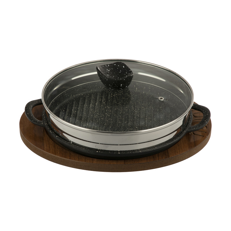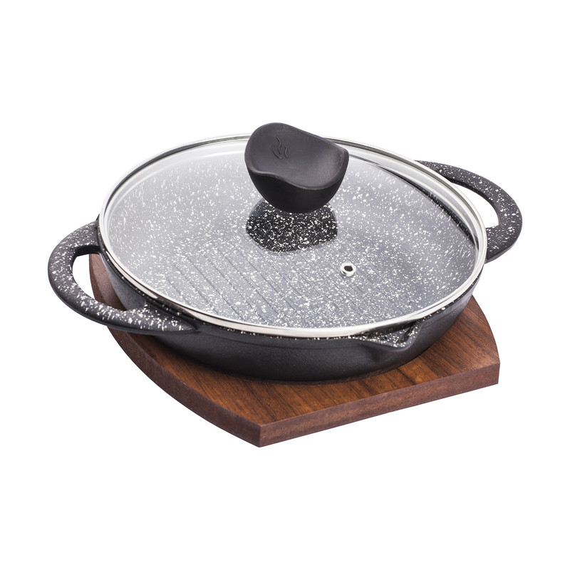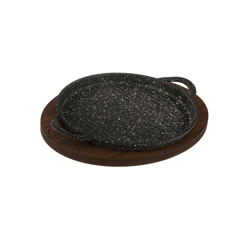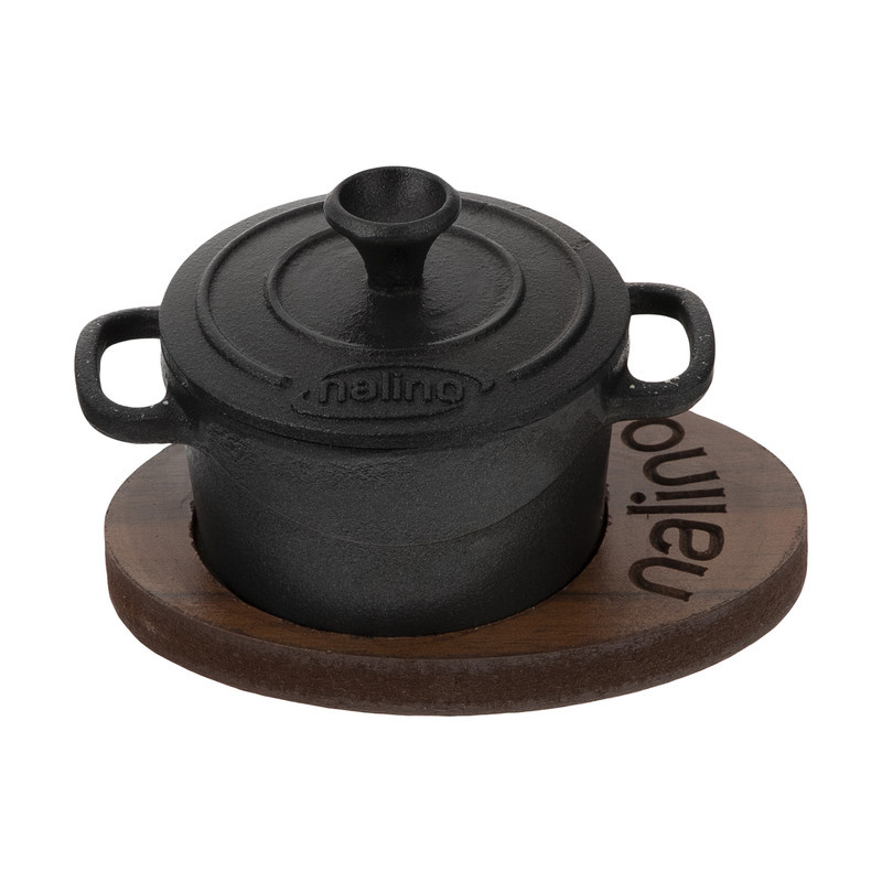 قابلمه چدن نالینو با زیره چوبی مدل Feleti سایز 14 به همراه استند چوبی