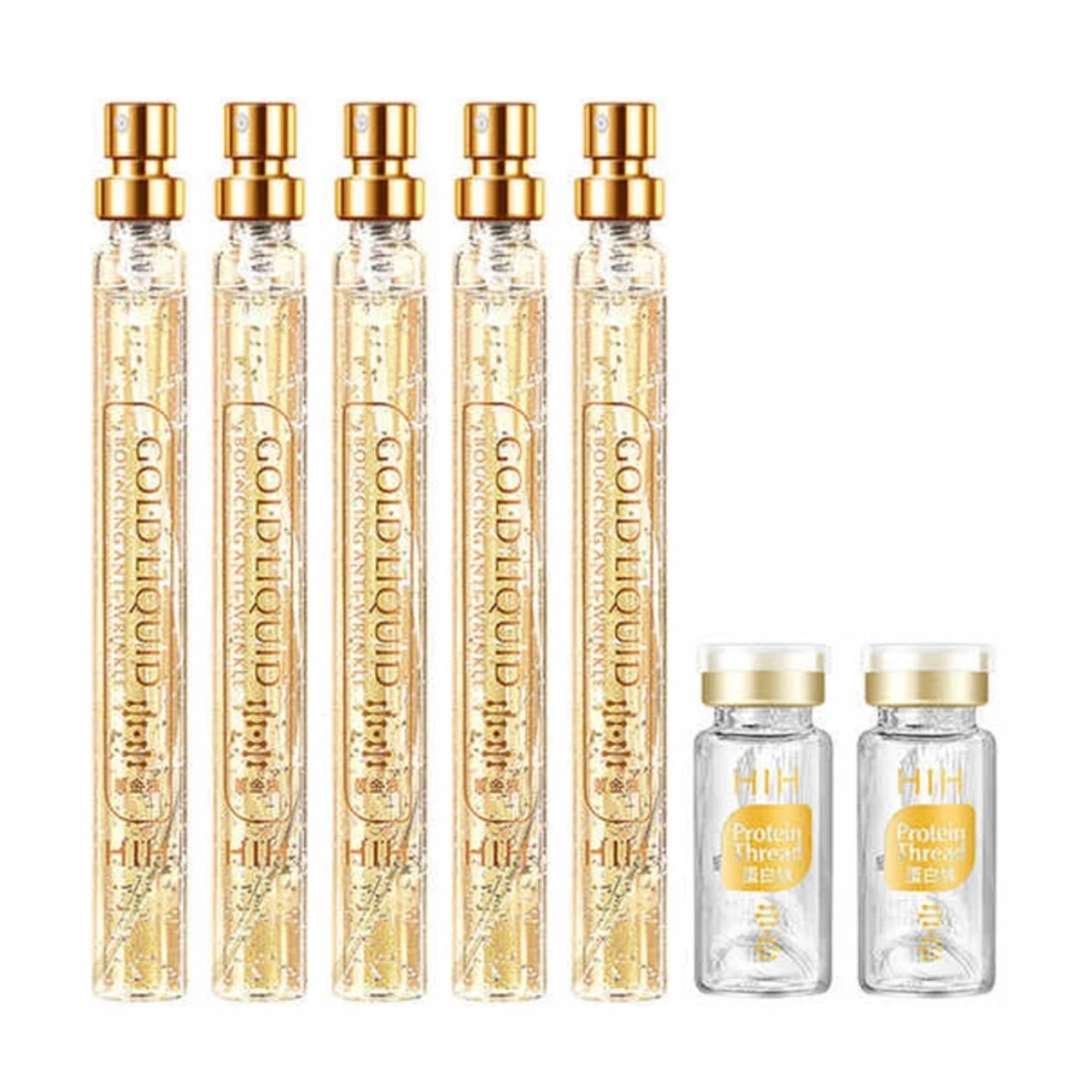 پک ضد چروک اچ آی اچ مدل نخ کلاژن جذبی و طلا بسته 7 عددی